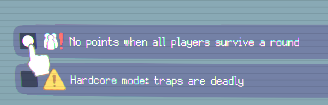 🚫 “Too Easy, No Points” Option — in the game settings, turn this option on and players will not score points if everyone reaches the end. This is off by default, but a lot of Ultimate Chicken Horse players have asked for it so let’s see what you think!